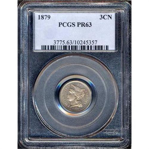 <b>1879 Nickel Three Cents. PCGS graded Proof 63.</b> From tip to toe a lightly toned specimen with impressive mint originality over spotless surfaces <b>(PCGS # 3775)</b> <i>