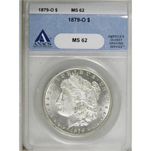 <B>1879-O $1 MS62 ANACS.</B></I> NGC Census: (807/2743). PCGS Population (1559/4227). Mintage: 2,887,000. Numismedia Wsl. Price for NGC/PCGS coin in MS62: $90. (#7090)<BR><BR><B>Coin Engraver:</B> George T. Morgan<BR><BR><b>Shipping:</b> Coins & Currency (<a target="_blank" href="http://www.heritageauctions.com/common/shipping.php">view shipping information</a>)