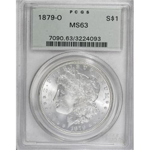 <B>1879-O $1 MS63 PCGS.</B></I> PCGS Population (2388/1858). NGC Census: (1522/1230). Mintage: 2,887,000. Numismedia Wsl. Price for NGC/PCGS coin in MS63: $146. (#7090)<BR><BR><B>Coin Engraver:</B> George T. Morgan<BR><BR><b>Shipping:</b> Coins & Currency (<a target="_blank" href="http://www.heritageauctions.com/common/shipping.php">view shipping information</a>)