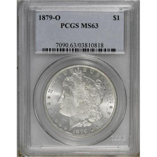 <B>1879-O $1 MS63 PCGS.</B></I> . PCGS Population (2408/1876). NGC Census: (1529/1249). Mintage: 2,887,000. Numismedia Wsl. Price for NGC/PCGS coin in MS63: $145. (#7090)<BR><BR><B>Coin Engraver:</B> George T. Morgan<BR><BR><b>Shipping:</b> Coins & Currency (<a target="_blank" href="http://www.heritageauctions.com/common/shipping.php">view shipping information</a>)