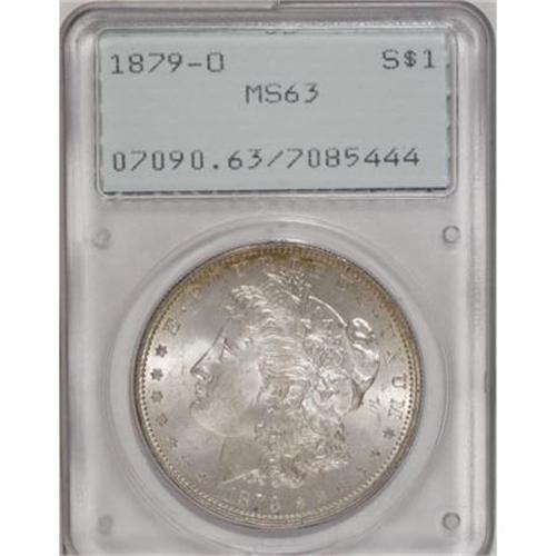 <B>1879-O $1 MS63 PCGS.</B></I> PCGS Population (2411/1885). NGC Census: (1533/1254). Mintage: 2,887,000. Numismedia Wsl. Price for NGC/PCGS coin in MS63: $145. (#7090)<BR><BR><B>Coin Engraver:</B> George T. Morgan<BR><BR><b>Shipping:</b> Coins & Currency (<a target="_blank" href="http://www.heritageauctions.com/common/shipping.php">view shipping information</a>)