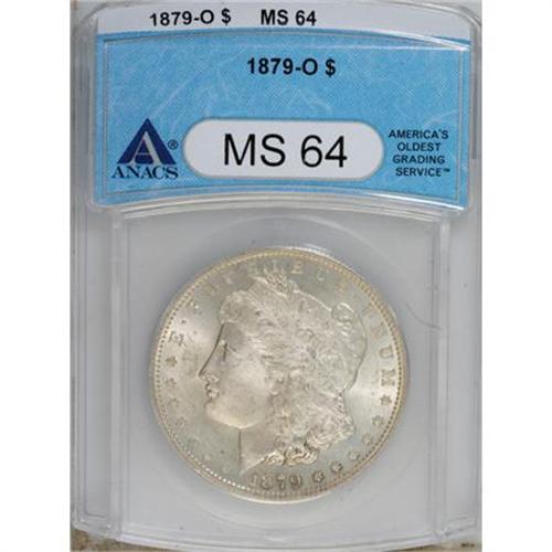 <B>1879-O $1 MS64 ANACS.</B></I> NGC Census: (1078/134). PCGS Population (1492/227). Mintage: 2,887,000. Numismedia Wsl. Price for NGC/PCGS coin in MS64: $420. (#7090)<BR><BR><b>Shipping:</b> Coins & Currency (<a target="_blank" href="http://www.heritageauctions.com/common/shipping.php">view shipping information</a>)
