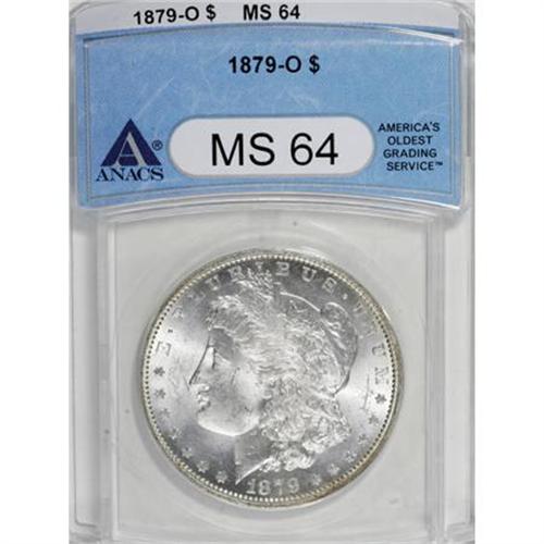 <B>1879-O $1 MS64 ANACS.</B></I> NGC Census: (1090/141). PCGS Population (1556/267). Mintage: 2,887,000. Numismedia Wsl. Price for NGC/PCGS coin in MS64: $420. (#7090)<BR><BR><B>Coin Engraver:</B> George T. Morgan<BR><BR><b>Shipping:</b> Coins & Currency (<a target="_blank" href="http://www.heritageauctions.com/common/shipping.php">view shipping information</a>)