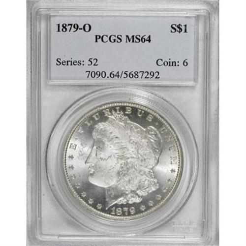 <B>1879-O $1 MS64 PCGS.</B></I> PCGS Population (1545/261). NGC Census: (1090/141). Mintage: 2,887,000. Numismedia Wsl. Price for NGC/PCGS coin in MS64: $420. (#7090)<BR><BR><B>Coin Engraver:</B> George T. Morgan<BR><BR><b>Shipping:</b> Coins & Currency (<a target="_blank" href="http://www.heritageauctions.com/common/shipping.php">view shipping information</a>)