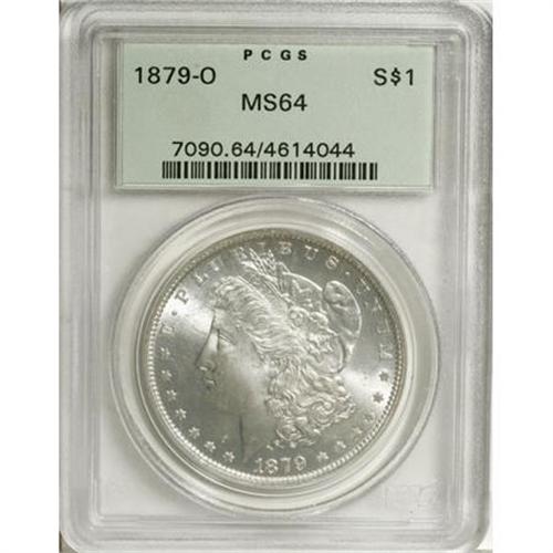 <B>1879-O $1 MS64 PCGS.</B></I> PCGS Population (1561/272). NGC Census: (1090/141). Mintage: 2,887,000. Numismedia Wsl. Price for NGC/PCGS coin in MS64: $420. (#7090)<BR><BR><B>Coin Engraver:</B> George T. Morgan<BR><BR><b>Shipping:</b> Coins & Currency (<a target="_blank" href="http://www.heritageauctions.com/common/shipping.php">view shipping information</a>)