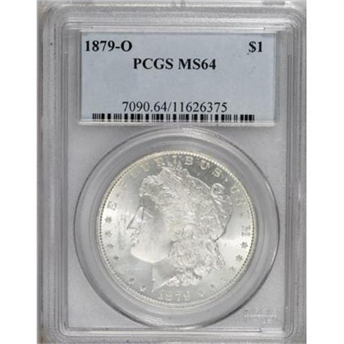 <B>1879-O $1 MS64 PCGS.</B></I> PCGS Population (1570/280). NGC Census: (1099/128). Mintage: 2,887,000. Numismedia Wsl. Price for NGC/PCGS coin in MS64: $420. (#7090)<BR><BR><B>Coin Engraver:</B> George T. Morgan<BR><BR><b>Shipping:</b> Coins & Currency (<a target="_blank" href="http://www.heritageauctions.com/common/shipping.php">view shipping information</a>)