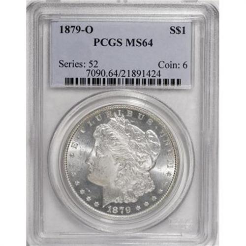 <B>1879-O $1 MS64 PCGS.</B></I> PCGS Population (1578/287). NGC Census: (1109/130). Mintage: 2,887,000. Numismedia Wsl. Price for NGC/PCGS coin in MS64: $420. (#7090)<BR><BR><B>Coin Engraver:</B> George T. Morgan<BR><BR><b>Shipping:</b> Coins & Currency (<a target="_blank" href="http://www.heritageauctions.com/common/shipping.php">view shipping information</a>)