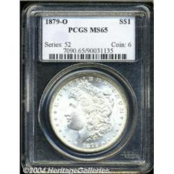 <table><tbody><tr><td><table> <TR><TD width="100%"><TABLE cellSpacing=1 cellPadding=3 width="100%" border=0><TBODY><TR><TD width="100%" bgColor=#79735c><FONT face=arial color=#ffffff size=3><B>Description</B> </FONT></TD></TR><TR><TD width="100%" bgColor=#ffffff><FONT face=arial size=2><B>1879-O $1 MS65 PCGS.</B></I> This is a very impressive coin that advanced Morgan specialists can appreciate. It is difficult to say what is more unusual on this piece: the fullness of strike or the bright mint luster. This issue is not known for completeness of strike, yet on this piece every design element is fully defined. Also, the mint luster is of the frosted variety, a characteristic one would expect on an 1879-S, but quite an unusual finish on an 1879-O. Brilliant throughout, the cheek of Liberty is smooth and rounded with no distracting abrasions. Population: 135 in 65, 9 finer (10/03).<BR><I>From the Dylan Elijah Collection of Morgan Dollars.</B></I> </FONT></TD></TR></TBODY></TABLE></TD></TR></TBODY></TABLE><BR><A name=PricesRealized></A><TABLE cellSpacing=0 cellPadding=0 width="100%" bgColor=#000000 border=0><TBODY><TR><TD width="100%"><TABLE cellSpacing=1 cellPadding=3 width="100%" border=0><TBODY><TR><TD width="100%" bgColor=#79735c><A name=PR><FONT face=arial color=#ffffff size=3><B>Previous Prices from Heritage Auctions</B> </FONT></A></TD></TR><TR><TD bgColor=#f6f6ed><TABLE cellSpacing=0 cellPadding=0 width="100%" border=1><TBODY><TR><TD align=middle width="33%"><B>Date</B></TD><TD align=middle width="33%"><B>Service</B></TD><TD align=middle width="33%"><B>Price</B></TD></TR><TR bgColor=whitesmoke><TD width="33%"><B>08/05/2003</B></TD><TD width="33%">NGC</TD><TD width="33%">$2,300.00</TD></TR><TR bgColor=whitesmoke><TD width="33%"><B>01/07/2004</B></TD><TD width="33%">PCGS</TD><TD width="33%">$2,702.50</TD></TR><TR bgColor=whitesmoke><TD width="33%"><B>07/29/2003</B></TD><TD width="33%">NGC</TD><TD width="33%">$2,300.00</TD></TR><TR bgColor=whitesmoke><TD width="33%"><B>01/11/2003</B></TD><TD width="33%">PCGS</TD><TD width="33%">$3,910.00</TD></TR><TR bgColor=whitesmoke><TD width="33%"><B>11/23/2002</B></TD><TD width="33%">PCGS</TD><TD width="33%">$2,530.00</TD></TR><TR bgColor=whitesmoke><TD width="33%"><B>04/27/2002</B></TD><TD width="33%">ANACS</TD><TD width="33%">$977.50</TD></TR><TR bgColor=whitesmoke><TD width="33%"><B>01/12/2002</B></TD><TD width="33%">PCGS</TD><TD width="33%">$2,357.50</TD></TR><TR bgColor=whitesmoke><TD width="33%"><B>01/05/2001</B></TD><TD width="33%">PCGS</TD><TD width="33%">$2,530.00</TD></TR><TR bgColor=whitesmoke><TD width="33%"><B>09/24/1999</B></TD><TD width="33%">PCGS</TD><TD width="33%">$2,415.00</TD></TR><TR bgColor=whitesmoke><TD width="33%"><B>08/07/1998</B></TD><TD width="33%">PCGS</TD><TD width="33%">$2,300.00</TD></TR><TR bgColor=whitesmoke><TD width="33%"><B>09/13/1997</B></TD><TD width="33%">PCGS</TD><TD width="33%">$2,185.00</TD></TR><TR bgColor=whitesmoke><TD width="33%"><B>03/16/1996</B></TD><TD width="33%">ANACS</TD><TD width="33%">$715.00</TD></TR><TR bgColor=whitesmoke><TD width="33%"><B>04/22/1994</B></TD><TD width="33%">NGC</TD><TD width="33%">$1,760.00</TD></TR><TR bgColor=whitesmoke><TD width="33%"><B>08/09/2000</B></TD><TD width="33%">PCGS</TD><TD width="33%">$2,300.00</TD></TR><TR bgColor=whitesmoke><TD width="33%"><B>01/08/2002</B></TD><TD width="33%">NGC</TD><TD width="33%">$2,530.00</TD></TR><TR bgColor=whitesmoke><TD width="33%"><B>10/01/1997</B></TD><TD width="33%">ANACS</TD><TD width="33%">$990.00</TD></TR><TR bgColor=whitesmoke><TD width="33%"><B>09/01/1999</B></TD><TD width="33%">PCGS</TD><TD width="33%">$2,530.00</TD></TR><TR bgColor=whitesmoke><TD width="33%"><B>02/01/1998</B></TD><TD width="33%">PCGS</TD><TD width="33%">$2,970.00</TD></TR><TR bgColor=whitesmoke><TD width="33%"><B>11/01/1998</B></TD><TD width="33%">PCGS</TD><TD width="33%">$2,415.00</TD></TR></TBODY></TABLE></TD></TR><TR><TD bgColor=#ffffff><FONT face=arial size=1 ?>PLEASE NOTE: All prices realized reflect the final hammer price PLUS the buyer's premium in auctions that charge a buyer's premium. Each item has a notation at the top of the listing indicating whether that lot included a buyer's premium. Example: A item that sells with a final hammer price of $100 and a 20% buyer's premium will display with a price realized of $120. All information listed is intended to be as accurate as possible, but errors are possible. Please use this guide carefully and inform us of any inaccuracies. </FONT></TD></TR></TBODY></TABLE></TD></TR></TBODY></TABLE><BR><TABLE cellSpacing=0 cellPadding=0 width="100%" bgColor=#000000 border=0><TBODY><TR><TD width="100%"><TABLE cellSpacing=1 cellPadding=3 width="100%" border=0><TBODY><TR><TD width="100%" bgColor=#79735c colSpan=6><FONT face=arial color=#ffffff size=3><B>Price Guide*</B> </FONT></TD></TR><TR bgColor=#f6f6ed><TD align=middle><B>Grade</B> </TD><TD align=middle><B>Coin World<BR>(Trends)</B> </TD><TD align=middle><B>Numismedia<BR>Retail</B> </TD><TD align=middle><B>Numismedia<BR>Wholesale</B> </TD><TD align=middle><B>Coin<BR>Universe</B> </TD><TD align=middle><B>Heritage<BR>Value Index</B> </TD></TR><TR bgColor=#ffffff><TD align=middle>64</TD><TD align=right>$425.00</TD><TD align=right>$470.00</TD><TD align=right>$376.00</TD><TD align=right>$360.00</TD><TD align=right>$285.50</TD></TR><TR style="FONT-WEIGHT: bold" bgColor=#cccfdd><TD align=middle>65</TD><TD align=right>$3,300.00</TD><TD align=right>---</TD><TD align=right>$2,375.00</TD><TD align=right>$3,500.00</TD><TD align=right>$2,377.50</TD></TR><TR bgColor=#ffffff><TD align=middle>66</TD><TD align=right>---</TD><TD align=right>---</TD><TD align=right>$12,250.00</TD><TD align=right>$13,000.00</TD><TD align=right>$8,891.67</TD></TR><TR bgColor=#ffffff><TD colSpan=6><FONT size=1>*All information listed is intended to be as accurate as possible, but errors are possible. No item may be returned or refused based on this information which is provided as a service to our cus