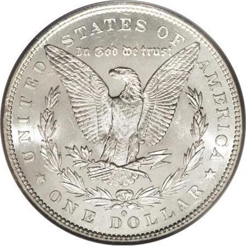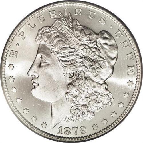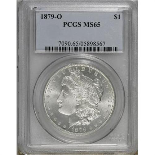 <B>1879-O $1 MS65 PCGS.</B></I> Very few 1879-O dollars are seen with the combination of fullness of strike and nearly abrasion-free surfaces that are found on this coin. The cheek of Liberty is smooth and rounded. A couple of shallow marks are seen across the eagle's breast which one would assume is the reason for the coin not grading even higher. The satiny mint luster takes on a slight bit of reflectivity in the fields. Brilliant throughout.<BR><BR><B>Coin Engraver:</B> George T. Morgan<BR><BR><b>Shipping:</b> Coins & Currency (<a target="_blank" href="http://www.heritageauctions.com/common/shipping.php">view shipping information</a>)