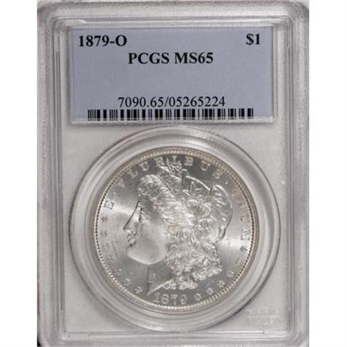 <B>1879-O $1 MS65 PCGS.</B></I> The impressive detail and exquisite luster of this magnificent dollar combine for undeniable visual appeal. Its surfaces are carefully preserved and essentially untoned save for occasional whispers of haze. While the 1879-O is plentiful in lesser Mint State grades, Gem examples are far more elusive, and anything finer is a condition rarity. PCGS has graded 11 numerically superior pieces (1/08).<BR><I>From The Oxford Collection.</B></I><BR><BR><B>Coin Engraver:</B> George T. Morgan<BR><BR><b>Shipping:</b> Coins & Currency (<a target="_blank" href="http://www.heritageauctions.com/common/shipping.php">view shipping information</a>)