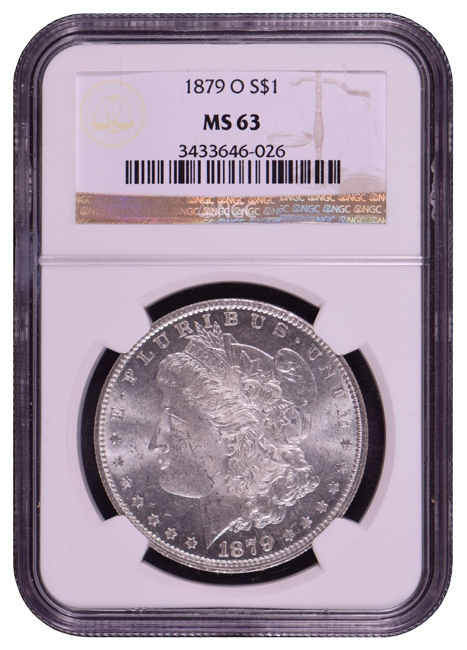 One 1879-O $1 Morgan Silver Dollar Coin NGC MS63.