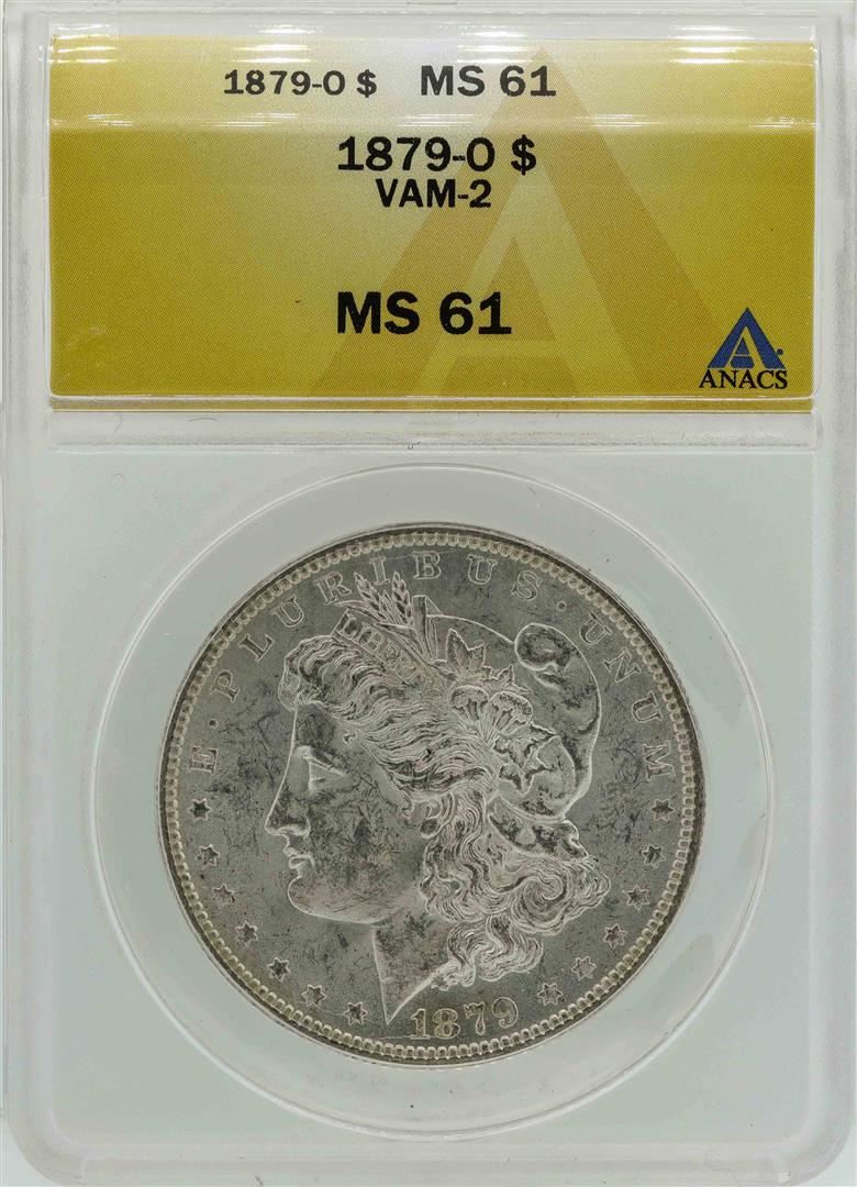 One 1879-O $1 Morgan Silver Dollar Coin VAM-2 ANACS MS61. ANACS Certified.