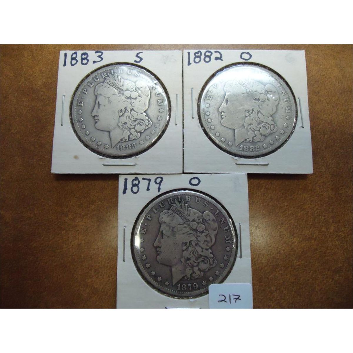 1879-O,82-O & 83-S MORGAN SILVER DOLLARS