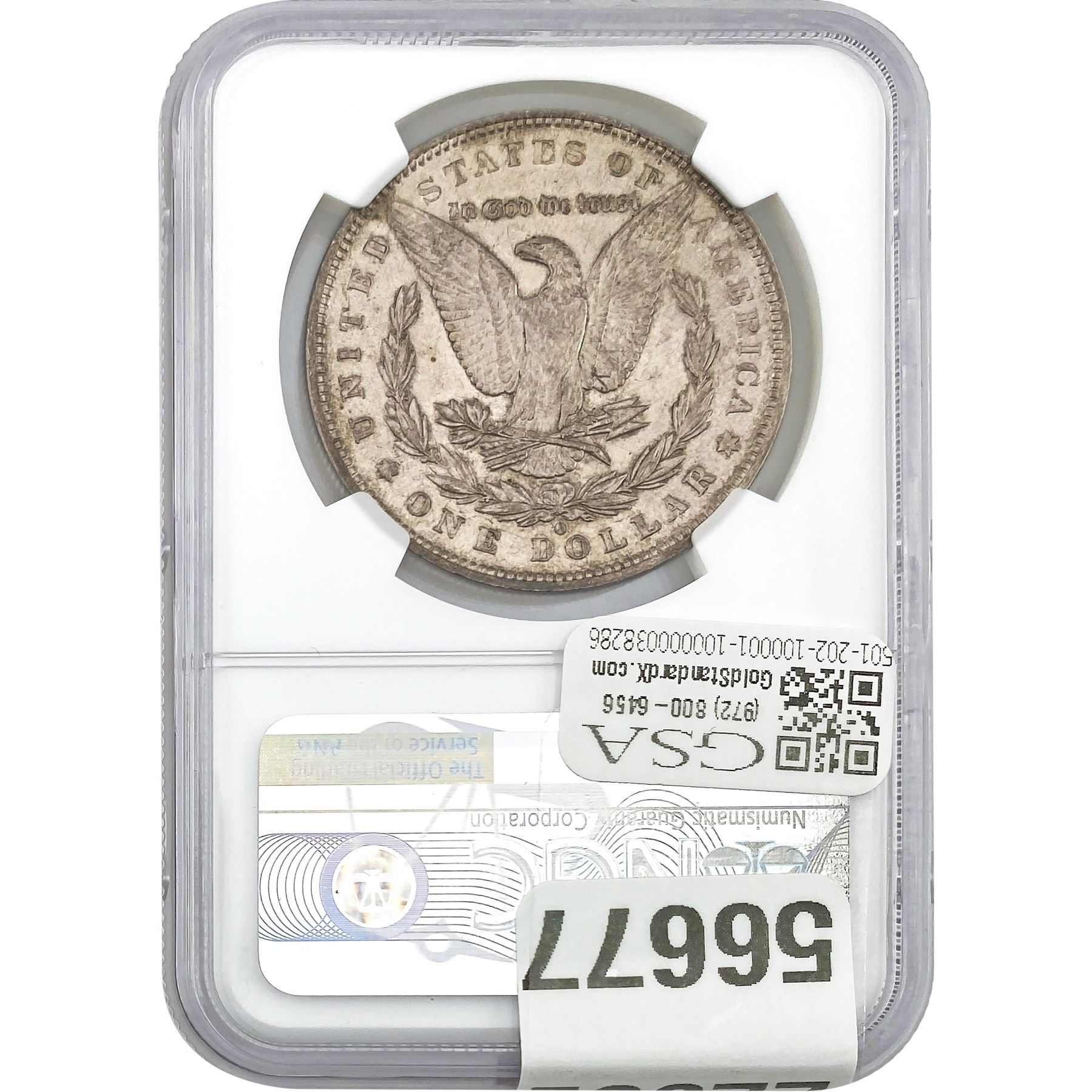 e. Coins sold referencing a third-party grading service are sold “AS IS” without any express or implied warranty, except for a guarantee by GSA that they are genuine. Removal or alteration of the holder, voids all of Bidder’s claims concerning that Product. Certain warranties may be available from the grading services and Bidders are referred to them for further details: Numismatic Guaranty Corporation (NGC), PO Box 4776, Sarasota, FL 34230, www.ngccoin.com/services/writtenguarantee.asp; Professional Coin Grading Services (PCGS), PO Box 9458, Newport Beach, CA 92658, www.pcgs.com/guarantee.html; ANACS, 6555 S. Kenton St., Ste. 303, Englewood, CO 80111; and Independent Coin Grading Co. (ICG), 7901 East Bellview, Ave., Suite 50, Englewood, CO 80111.