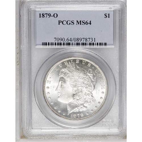 <B>1879-O<img border='0' src='http://www.heritagecoins.com/images/star.gif' width=10 height=10>$1> MS64 PCGS.</B></I> A snowy-white representative with strong definition on the major design elements. Attractive for this first year New Orleans issue, especially if one wants to avoid the far more costly Gem category.