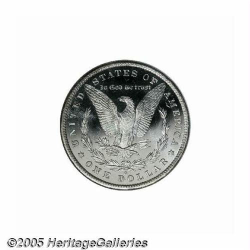 <B>1879-O<S$1> MS65 Deep Mirror Prooflike NGC.</B></I> While occasionally available with Prooflike fields, Deep Mirror Prooflike 1879-O dollars are a real rarity. Numerous, heavy abrasions are the rule for this issue and true Gems are also seldom encountered. Finding a coin that is both a Gem and has Deep Mirror Prooflike fields is an extreme rarity. This is an extraordinary coin. Brilliant throughout, the devices are snow-white and cast a strong frosted shadow against the unfathomable depth of reflectivity seen in the "black" fields. Fully struck throughout, there are only the slightest abrasions on each side, certainly none are distracting or deserve individual mention. Only six pieces (2-NGC, 4-PCGS) have been so graded, and none are finer (6/05).