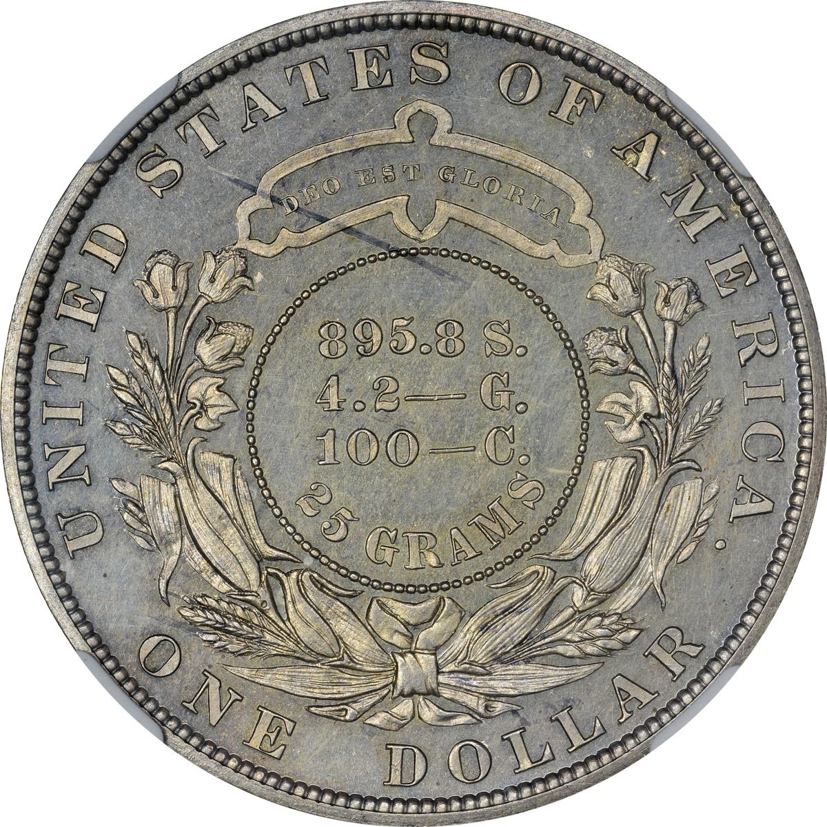 Dies: as illustrated above. Warm silver-gray throughout with a trace of pale golden toning on both sides. Sharp and appealing with reflective fields and lightly dusted motifs. The fineness of this variety is listed on the reverse – 895.8 silver, 4.2 gold, and 100 copper for a weight of 25 grams. Choice for the grade.