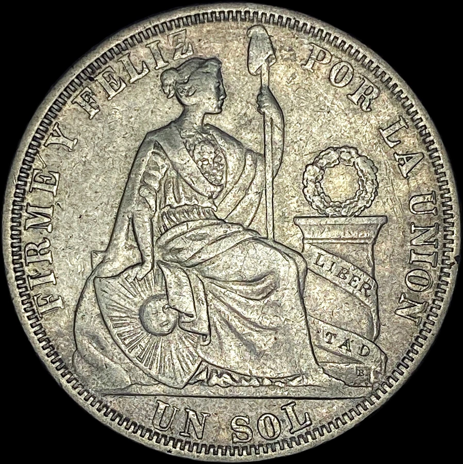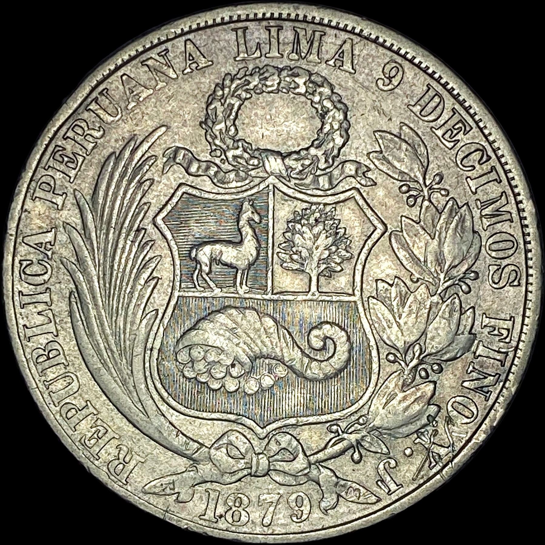 1879 Peru Silver Un Sol NEARLY UNCIRCULATED