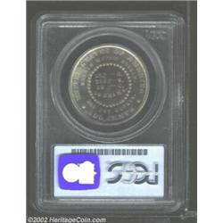 1879 S$1 Goloid Metric Dollar, Judd-1627, Pollock-1823, R.3(?), PR62 PCGS. William Barber's design for the Goloid Metric dollar with a large head of Liberty facing left and LIBERTY on a wide ribbon around her head. The reverse is laid out with the proposed composition of the coin in the center, surrounded by a circle of 38 stars. Struck in silver with a reeded edge. Mostly brilliant and highly reflective with a light overlay of rose and golden toning on each side. Important notice: We expect to be auctioning lots at the rate of 200-250 per hour. Sometimes eBay Premier live bid software cannot keep up with that pace, so we strongly recommend that you place a realistic proxy bid now as insurance to avoid disappointment. Also please note that all Heritage/CAA lots purchased through eBay Premier carry a 20% Buyer's Premium. Please make sure you read the Terms and Conditions.