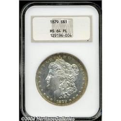 <B>1879<S$1> MS64 Prooflike NGC.</B></I> Sharply detailed and lightly toned at the borders with sparkling, modestly reflective fields. Legitimately scarce in high grade prooflike condition. <BR><BR><B>Important notice:</B> Heritage usually auctions material at the rate of 200-250 lots per hour. On some occasions eBay Live bid software or the Internet may not be able to keep up with the pace of the auction. We recommend placing a realistic absentee bid now as insurance to avoid disappointment. Occasionally the auctioneer may eliminate or reject an eBay Live bid, and the auctioneer may also reopen a lot after the close of the eBay live bidding (usually because we missed an audience bid), and may reject your bid even if it shows you as the winning bidder. By bidding via eBay Live, you agree that Heritage may award the lot to another bidder at its sole discretion under the circumstances described above or any other reasonable circumstances. Since eBay bids are not shown to us until we open the lot on the floor, we treat those bids just like floor bids. In most cases the floor responds before the eBay bid is presented to us, due to Internet lag time, so for consistency we have made it a policy that floor bids are always considered first over tie eBay live bids. Also please note that all Heritage lots purchased through eBay Live carry a 20% Buyer's Premium. Please make sure you read the Terms and Conditions before you bid.