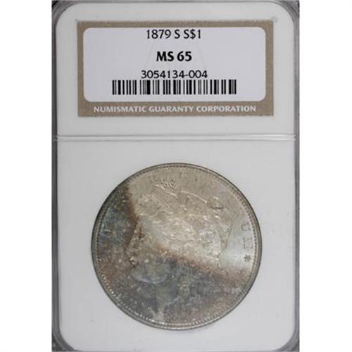 <B>1879-S $1 MS65 NGC.</B></I> NGC Census: (16863/7174). PCGS Population (19835/6797). Mintage: 9,110,000. Numismedia Wsl. Price for NGC/PCGS coin in MS65: $117. (#7092)<BR><BR><B>Coin Engraver:</B> George T. Morgan<BR><BR><b>Shipping:</b> Coins & Currency (<a target="_blank" href="http://www.heritageauctions.com/common/shipping.php">view shipping information</a>)