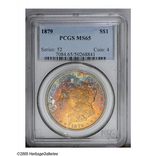 1879 S$1 MS65 PCGS. Beautiful golden-red, crimson, and 1879[S$1] MS65 PCGS.