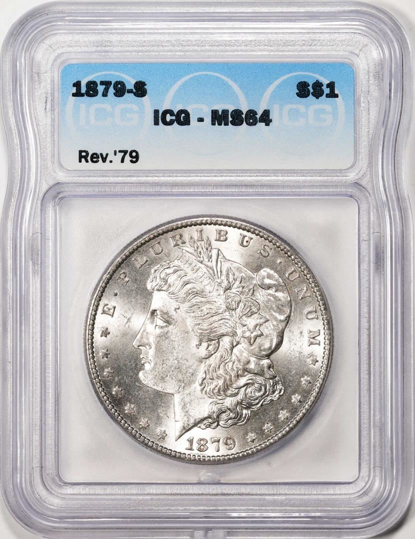 One 1879-S $1 Morgan Silver Dollar Coin ICG MS64. ICG Certified.