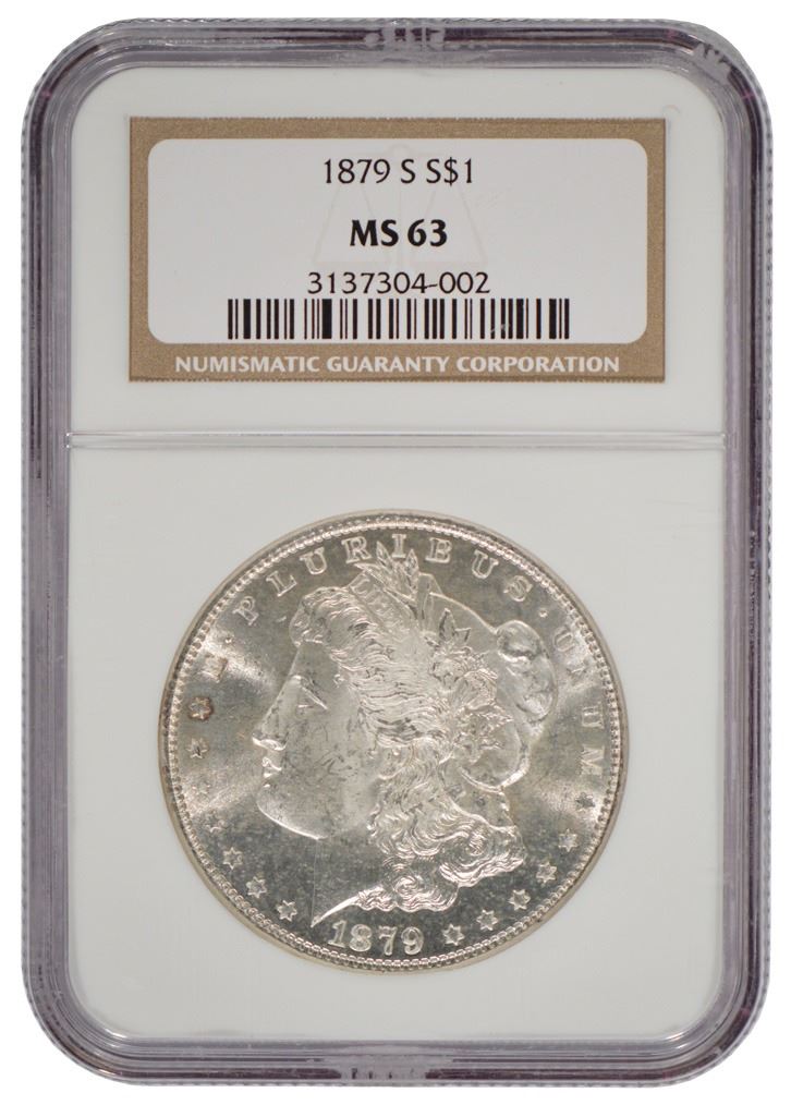 One 1879-S $1 Morgan Silver Dollar Coin NGC MS63.