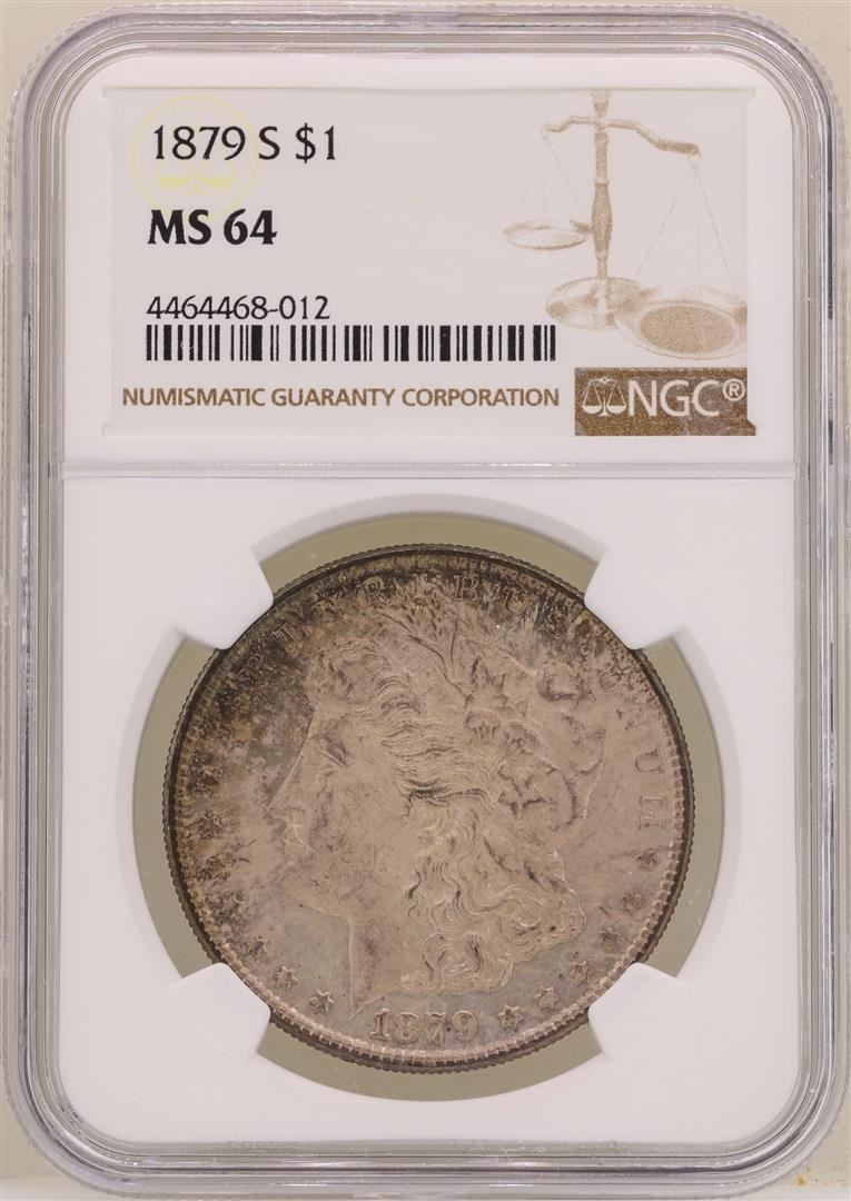 One 1879-S $1 Morgan Silver Dollar Coin NGC MS64. NGC Certified.