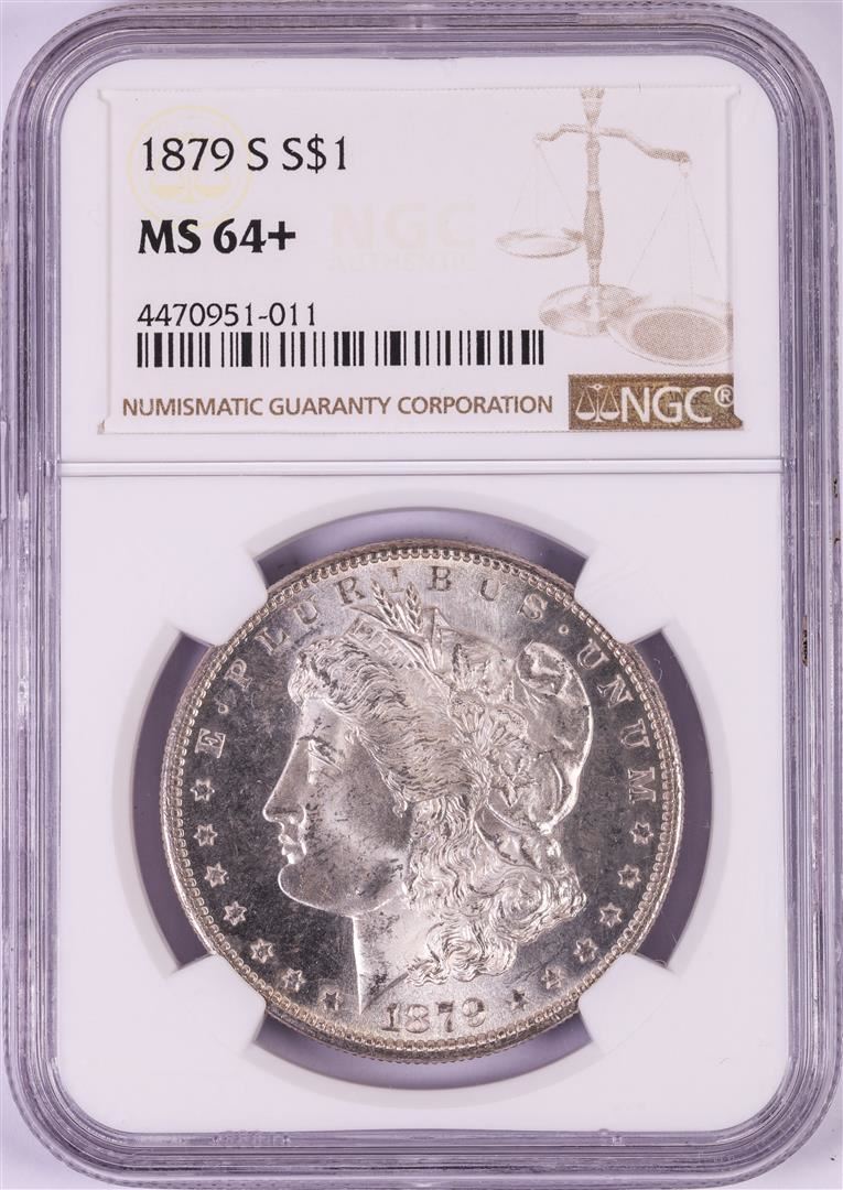 One 1879-S $1 Morgan Silver Dollar Coin NGC MS64+. NGC Certified.