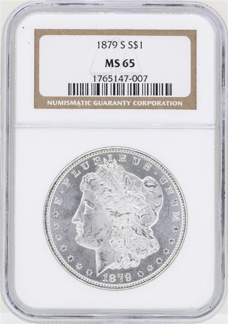 One 1879-S $1 Morgan Silver Dollar Coin NGC MS65. NGC Certified.