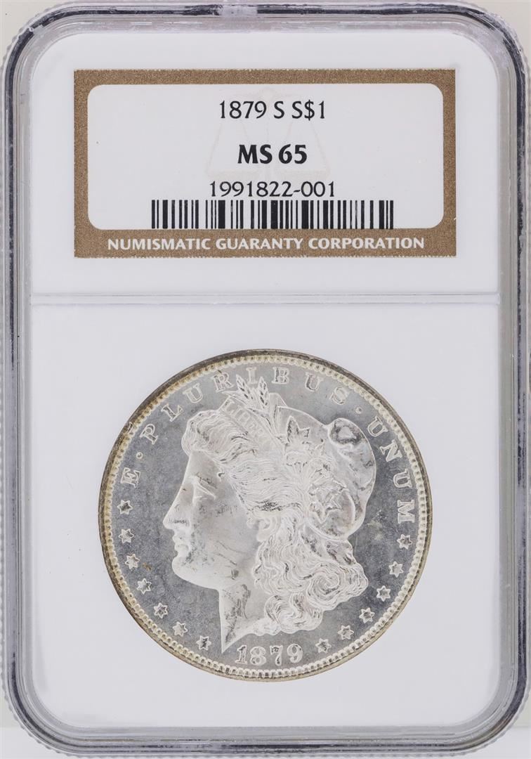 One 1879-S $1 Morgan Silver Dollar Coin NGC MS65. NGC Certified.