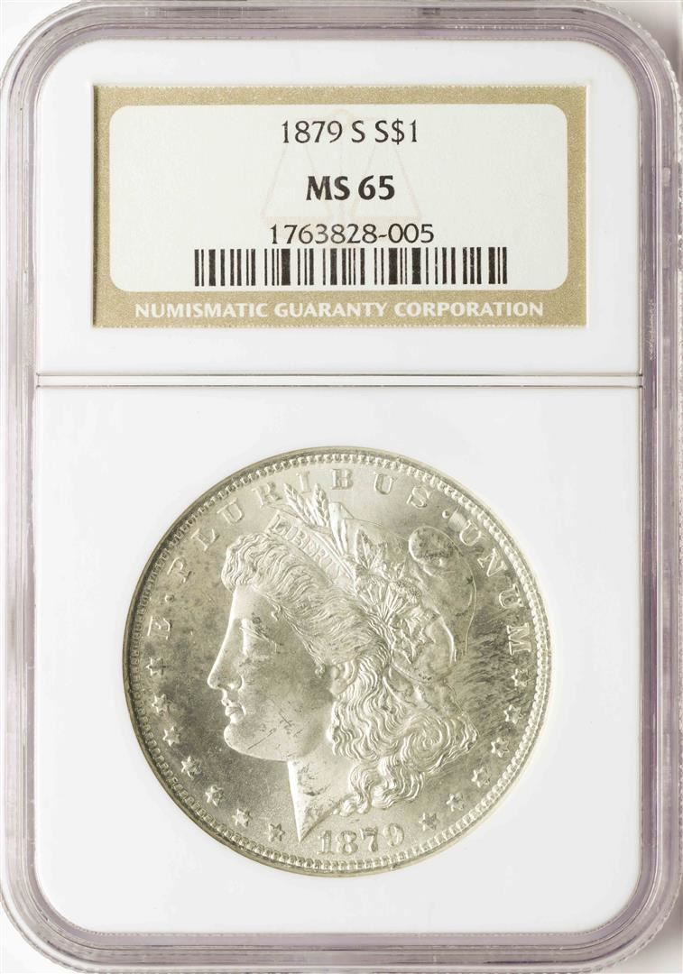 One 1879-S $1 Morgan Silver Dollar Coin NGC MS65. NGC Certified.