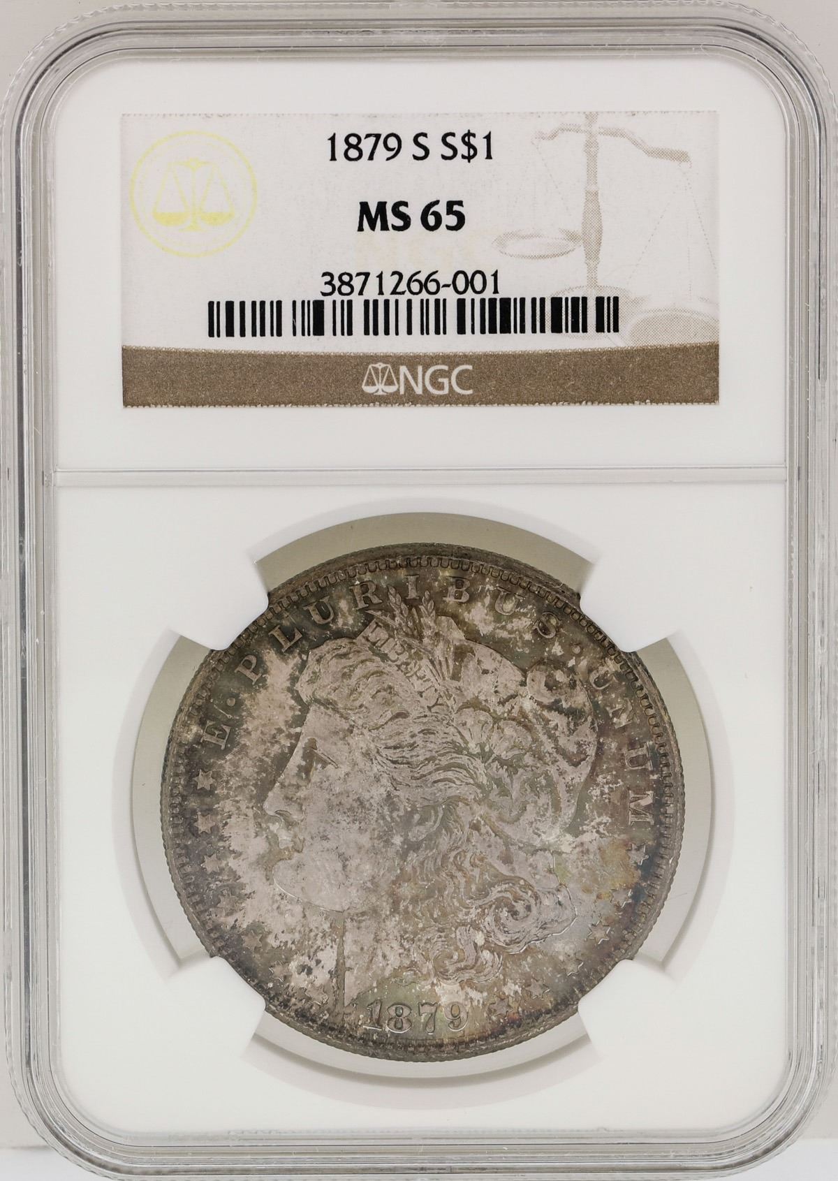 One 1879-S $1 Morgan Silver Dollar Coin NGC MS65.