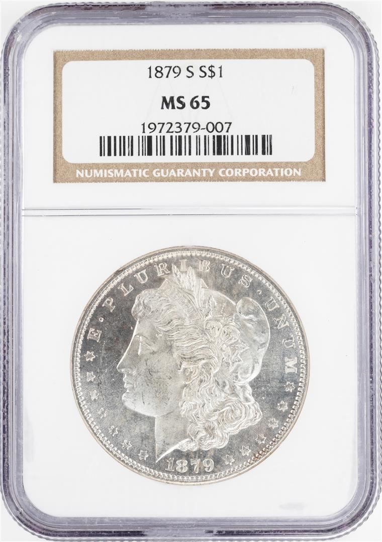 One 1879-S $1 Morgan Silver Dollar Coin NGC MS65. NGC Certified.