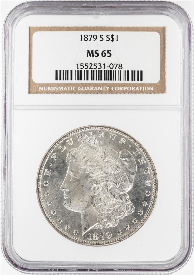One 1879-S $1 Morgan Silver Dollar Coin NGC MS65. NGC Certified.