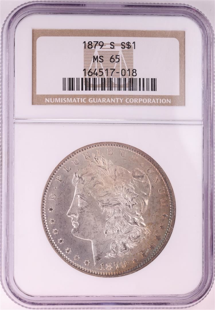 One 1879-S $1 Morgan Silver Dollar Coin NGC MS65. NGC Certified.