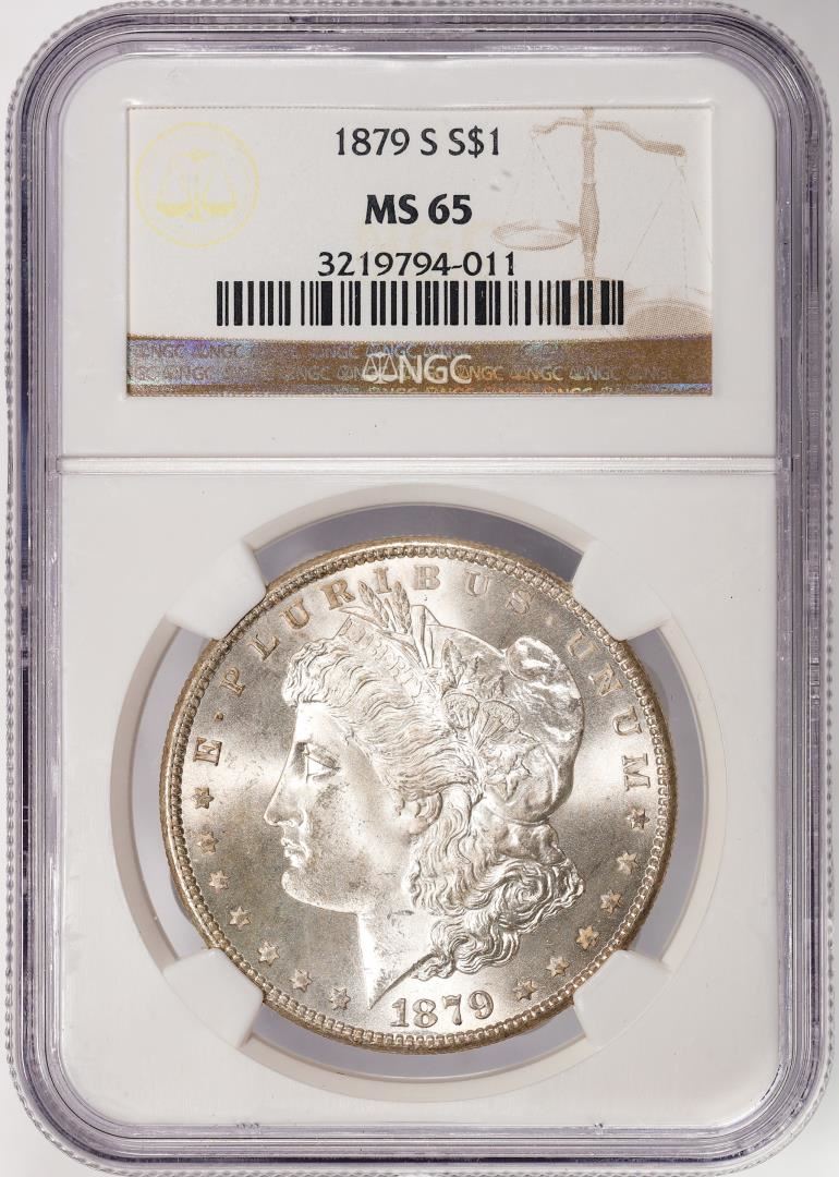 One 1879-S $1 Morgan Silver Dollar Coin NGC MS65. NGC Certified.