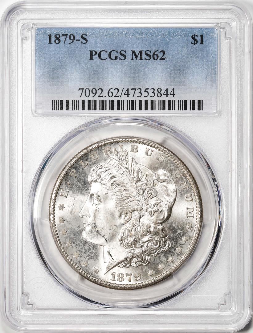 One 1879-S $1 Morgan Silver Dollar Coin PCGS MS62. PCGS Graded.
