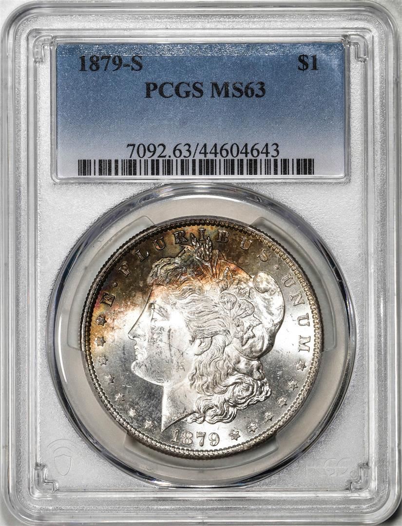 One 1879-S $1 Morgan Silver Dollar Coin PCGS MS63 Nice Toning. PCGS Graded.