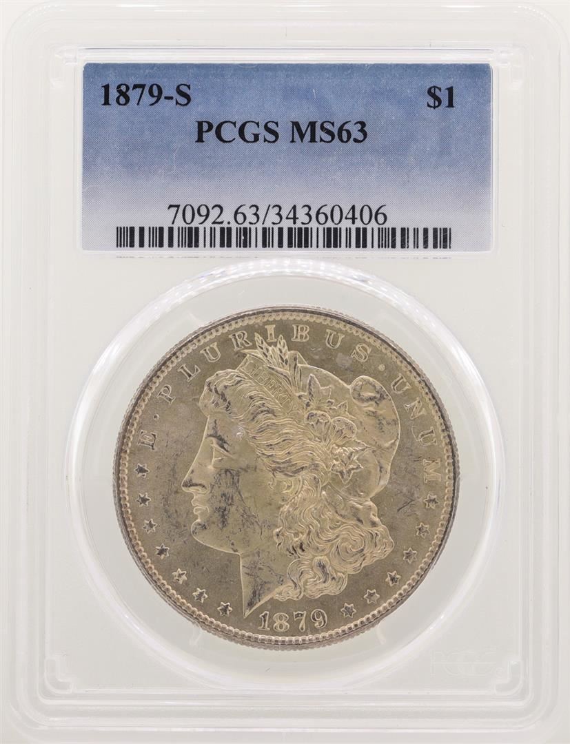 One 1879-S $1 Morgan Silver Dollar Coin PCGS MS63. PCGS Graded.