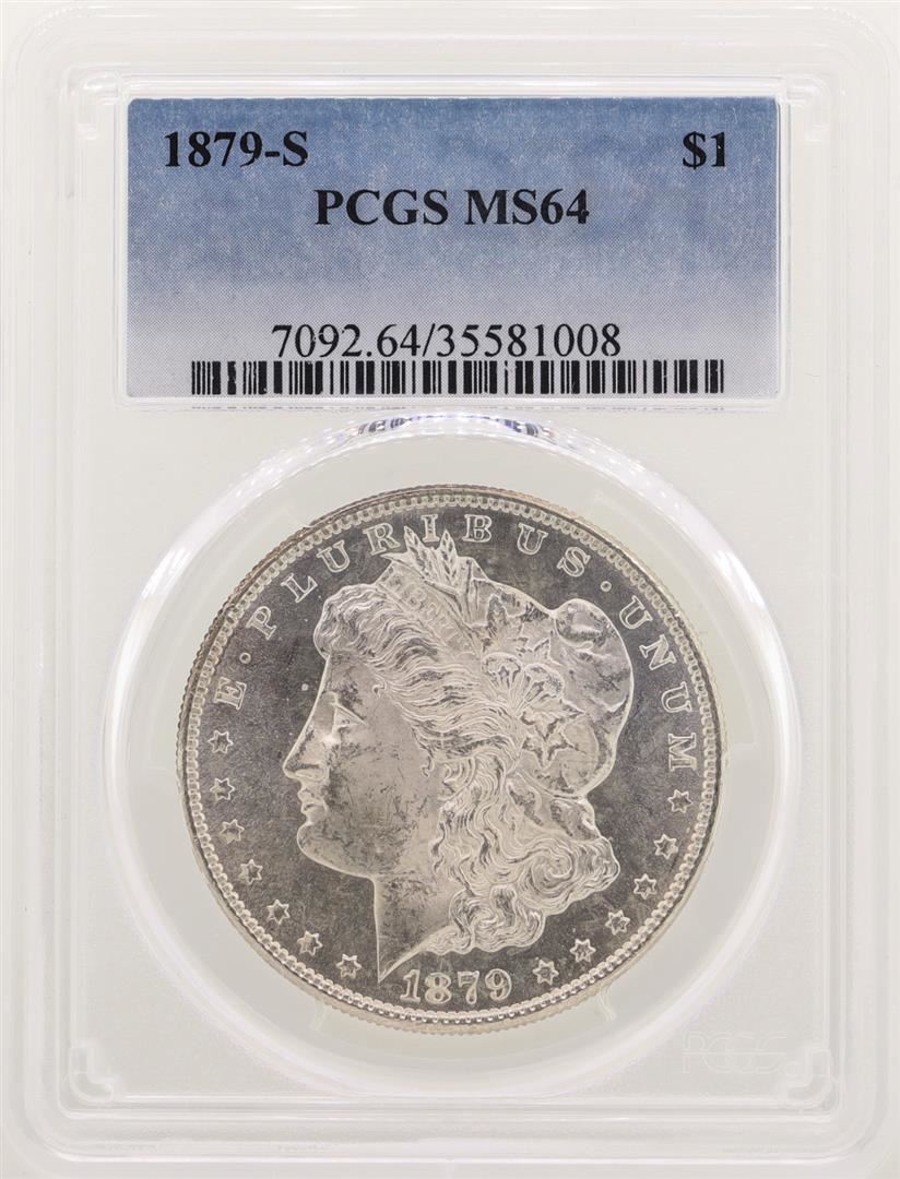 One 1879-S $1 Morgan Silver Dollar Coin PCGS MS64. PCGS Graded.