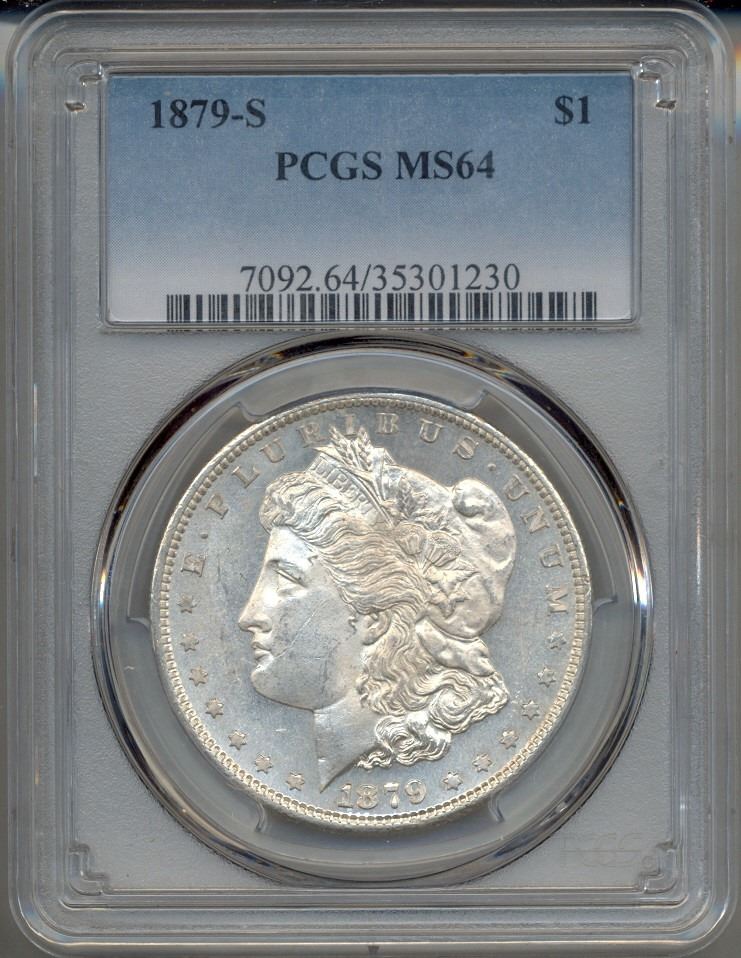 One 1879-S $1 Morgan Silver Dollar Coin PCGS MS64.