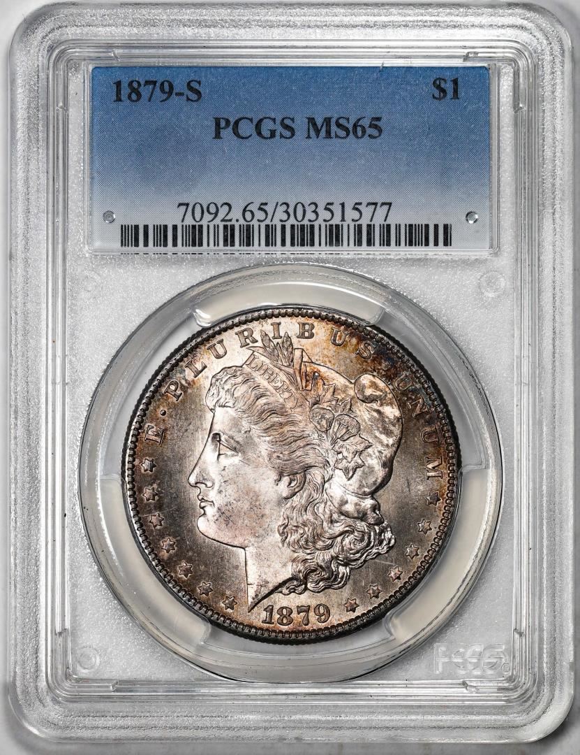 One 1879-S $1 Morgan Silver Dollar Coin PCGS MS65 Nice Toning. PCGS Graded.