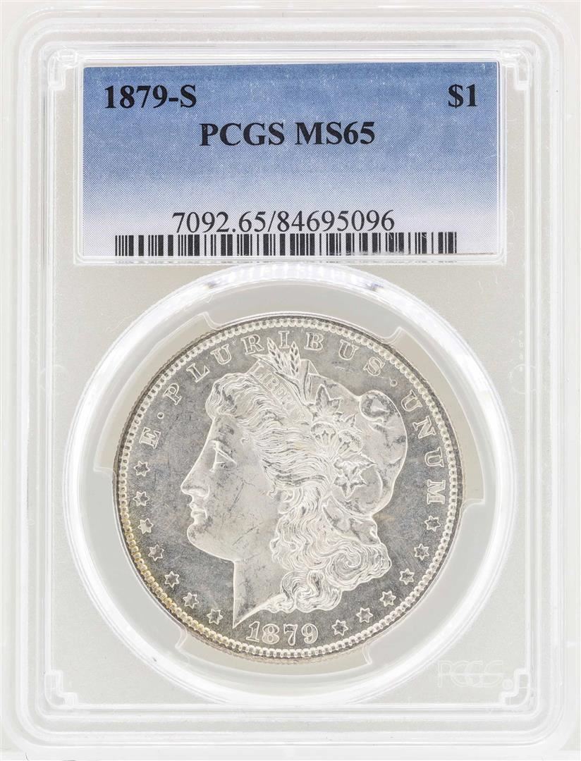 One 1879-S $1 Morgan Silver Dollar Coin PCGS MS65. PCGS Graded.