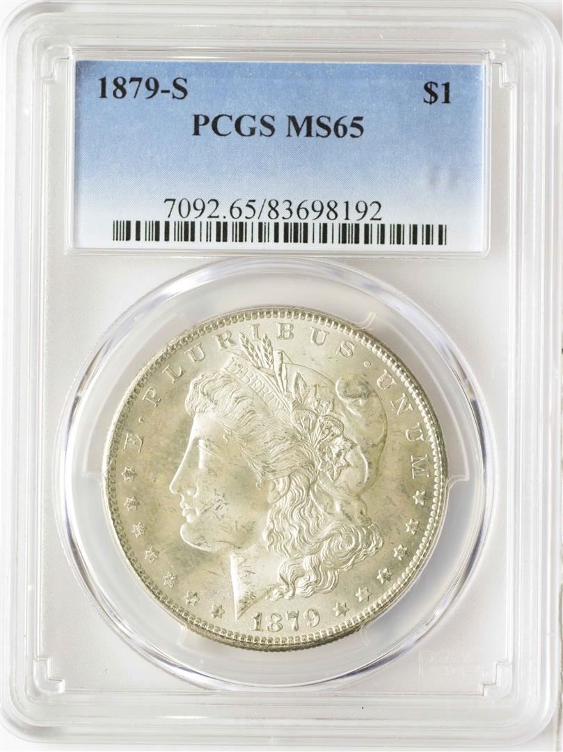 One 1879-S $1 Morgan Silver Dollar Coin PCGS MS65. PCGS Graded.