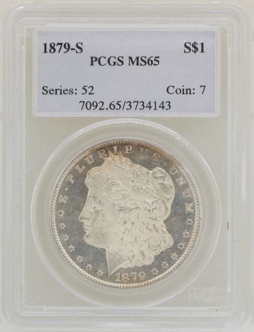 One 1879-S $1 Morgan Silver Dollar Coin PCGS MS65. PCGS Graded.