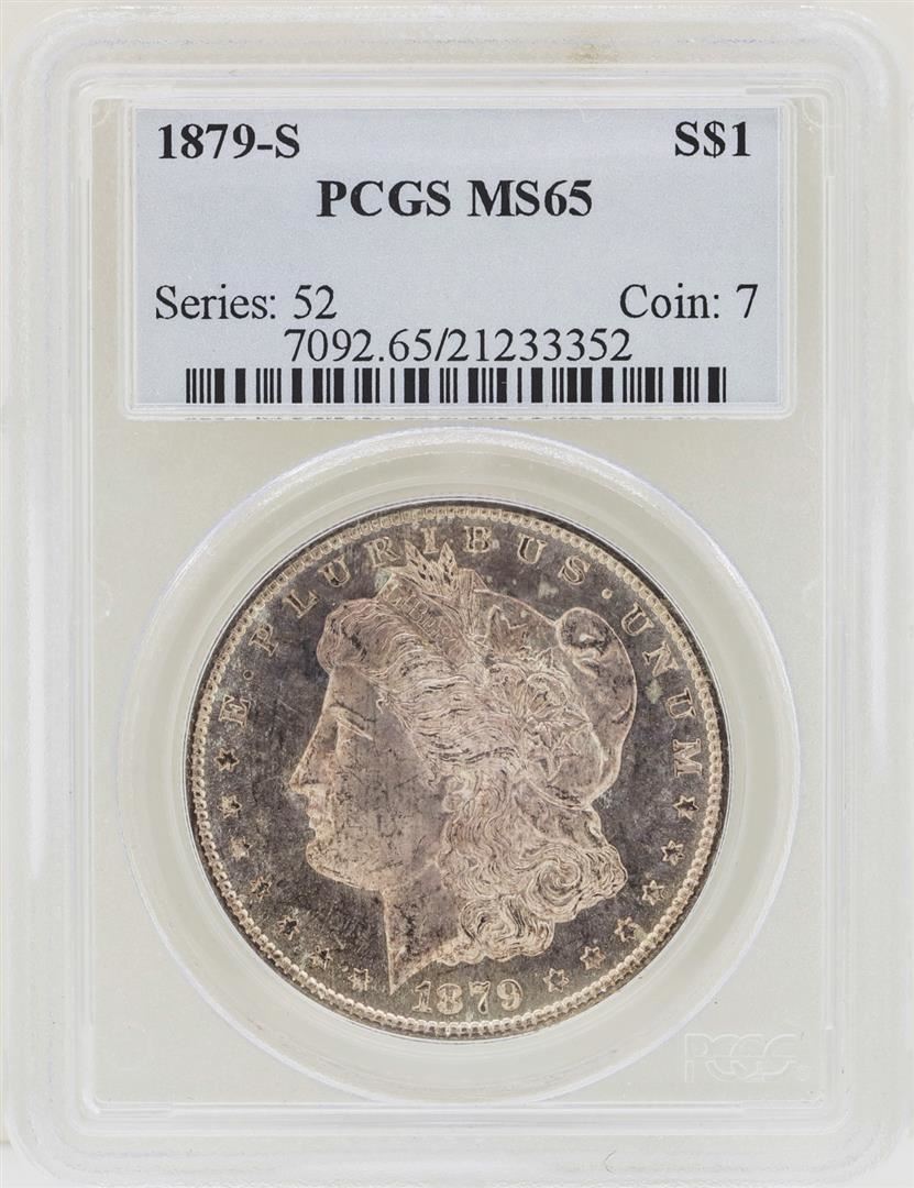 One 1879-S $1 Morgan Silver Dollar Coin PCGS MS65. PCGS Certified.