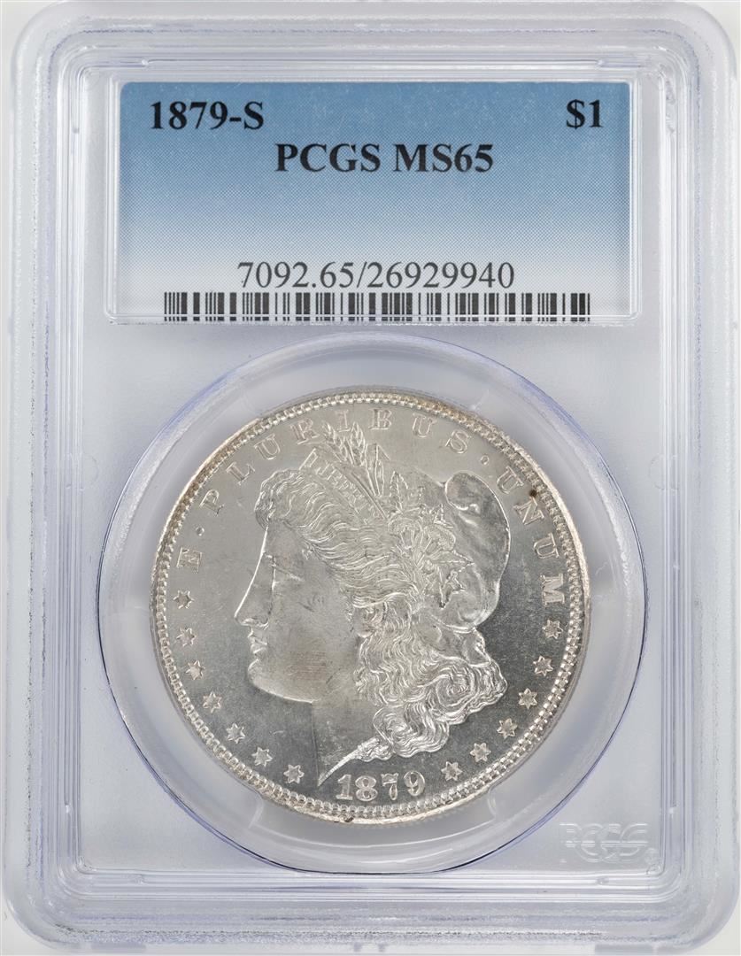 One 1879-S $1 Morgan Silver Dollar Coin PCGS MS65. PCGS Graded.