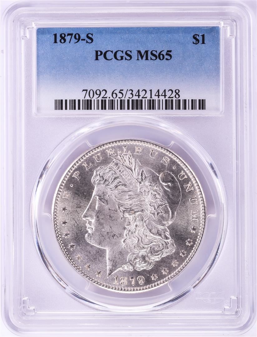One 1879-S $1 Morgan Silver Dollar Coin PCGS MS65. PCGS Graded.